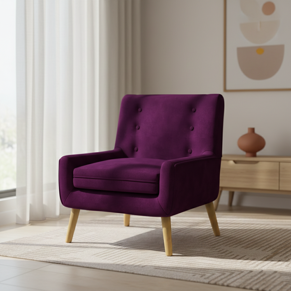Let your visitors go gaga over your stunning home decor especially with this violet hued designer chair. This statement furniture will uplift the ambiance of your sitting area, especially with the ambient, mood lightings in evening. So make haste and buy this accent chair online.