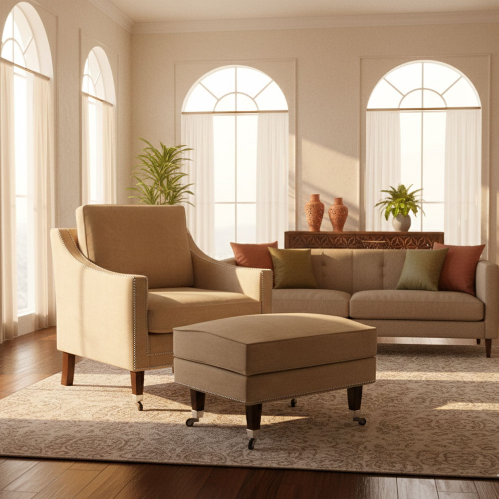 Sandy Fawn Arm Chair with Ottoman