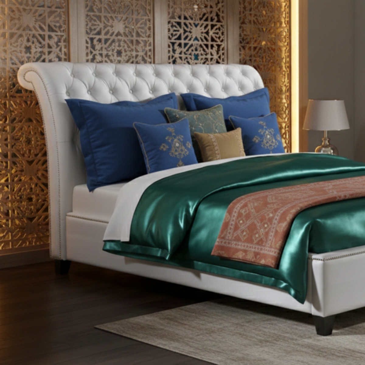 SOFT WHITE TUFTED BED - QUEEN SIZE