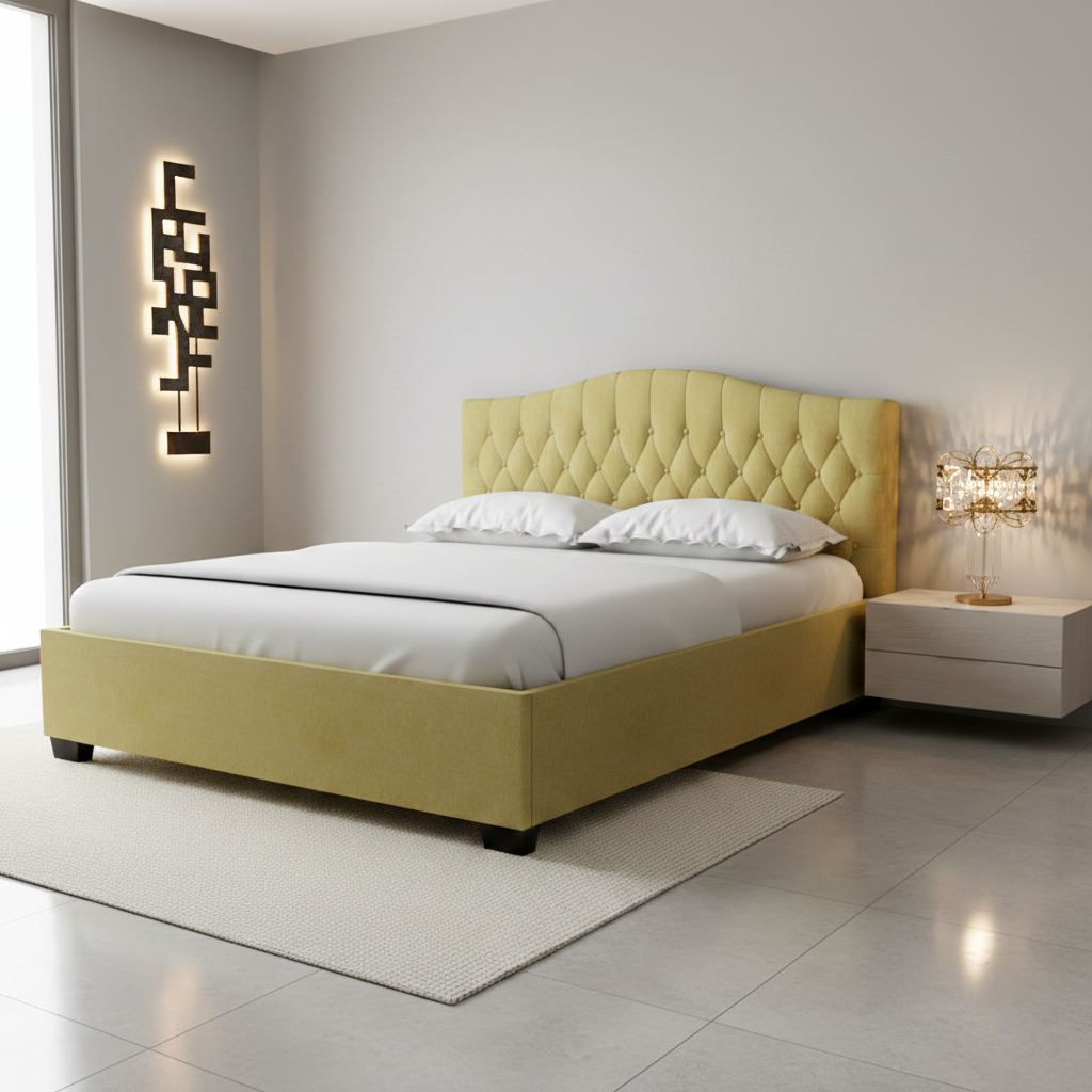 Infuse your bedroom with quiet sophistication through the Winser Bed in its elegant queen size. Draped in luxurious beige fabric, the tufted headboard radiates timeless charm while offering a refined focal point to your space. Designed for those who appreciate intimacy without compromising style, the queen size variant brings balanced proportions that suit both spacious and compact interiors alike.