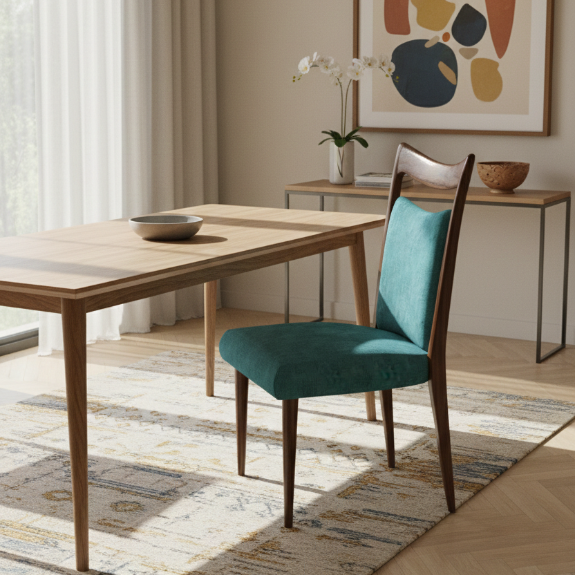 The smooth silhouette paired with rich textures makes it a versatile masterpiece, complementing both contemporary and classic interiors. With its striking form and premium craftsmanship, this dining chair transforms everyday meals into occasions of luxury.