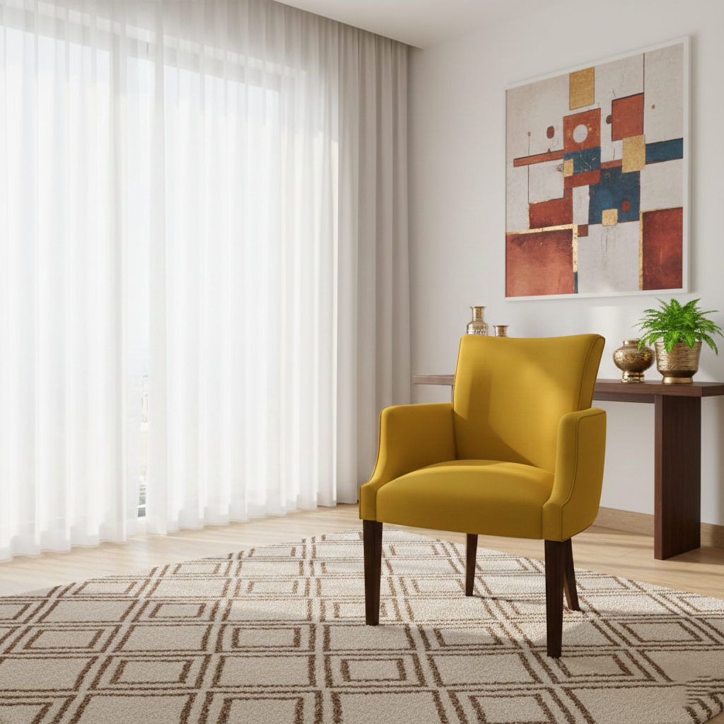 Do a little more for your dining space and get your dining table a flattering dining table chair. Available in a summery hued upholstery and a natural finesse frame, this Floret dining chair comes with a breakthrough appeal and design. So make haste and buy this accent chair online.