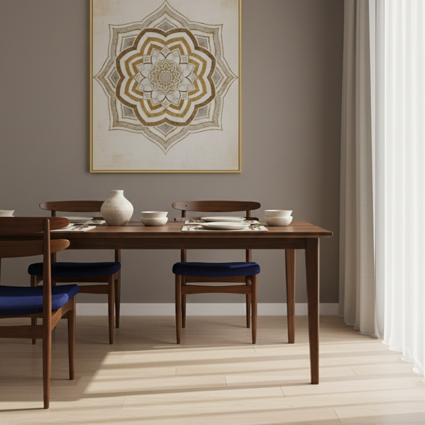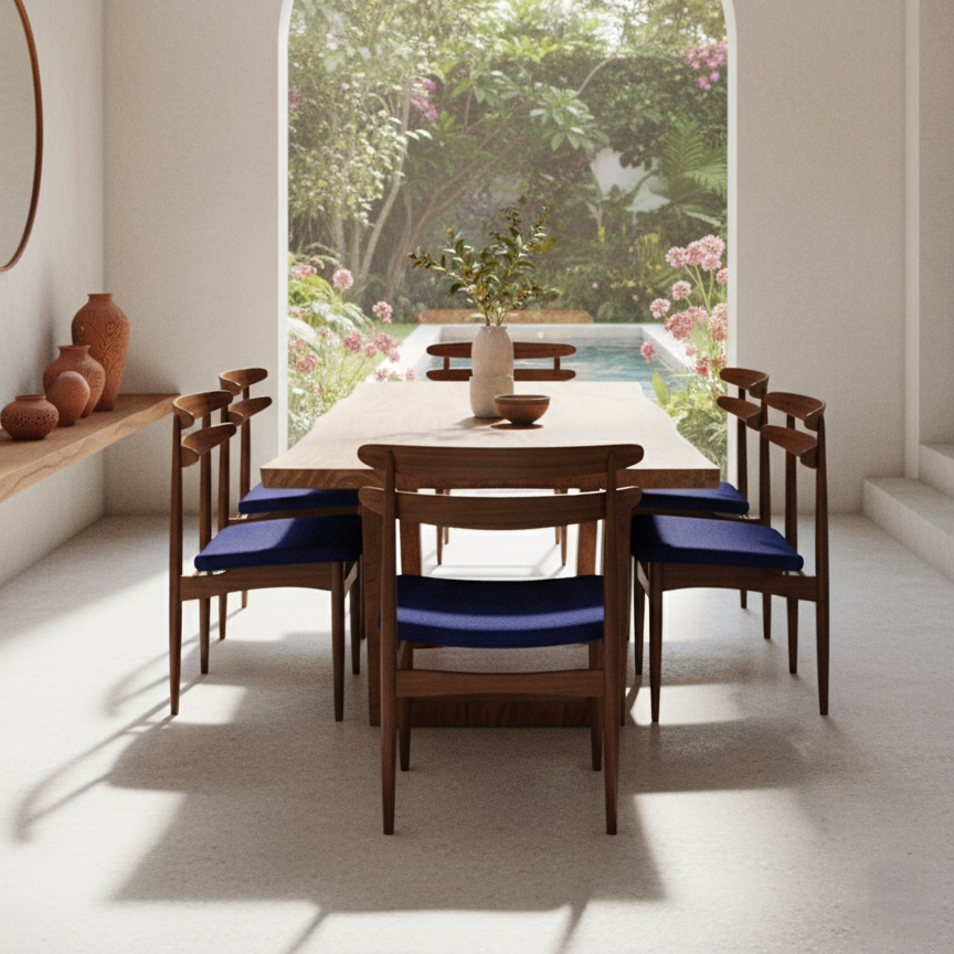 The Cobalt Blue variant of the Hendgelook Chair is where bold artistry meets refined design. The rich cobalt upholstery creates a striking contrast against the smooth wooden frame, exuding a modern yet timeless aura. Its dual-rail backrest, sculpted for ergonomic ease, enhances posture while adding a touch of architectural finesse.