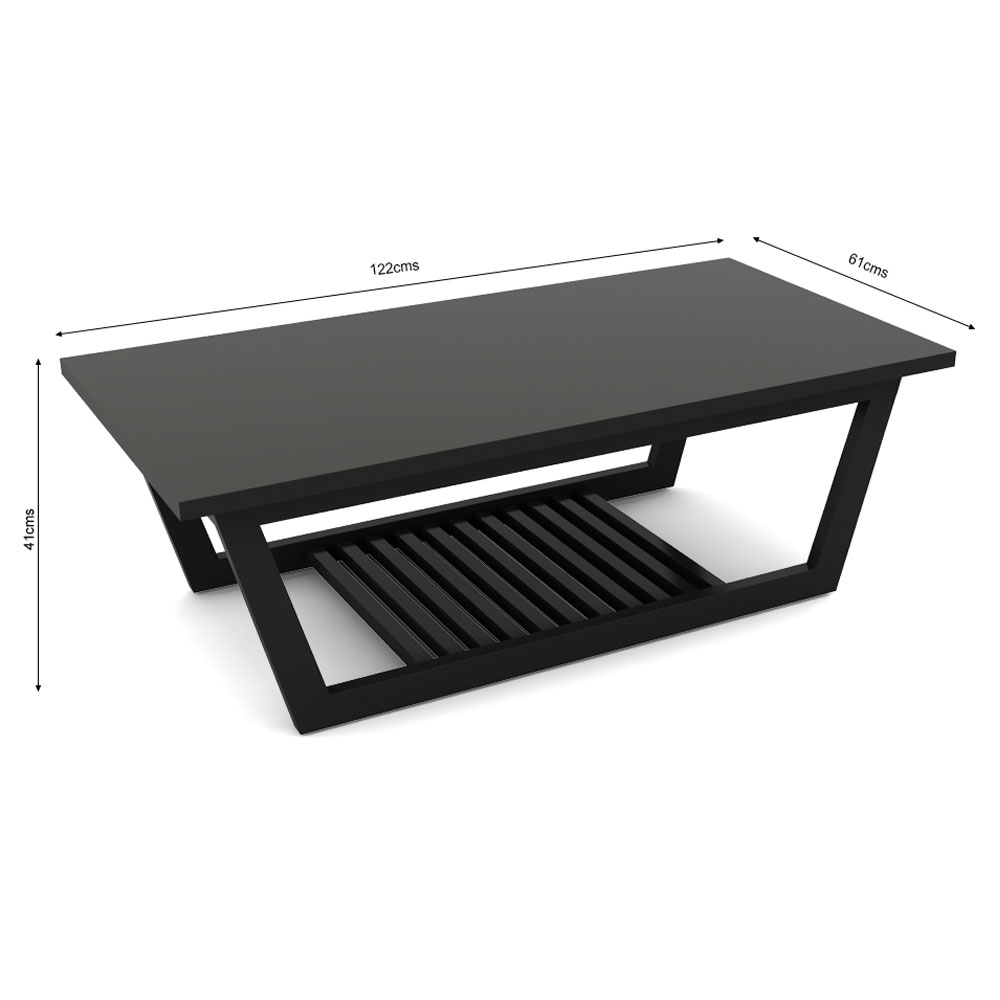 Our ultra modern center table with its sharp, edgy top and stylised, barred design beneath is a breakthrough design, that is powered to uplift the character of your home. You can introduce this black wooden center table into your study, lounge or even your drawing room.
