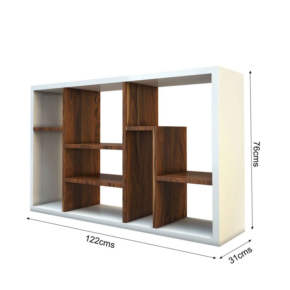 1. Maximize space and enhance home decor with this modern media cum display bookcase featuring varied open shelves to fulfill its purpose in every respect.