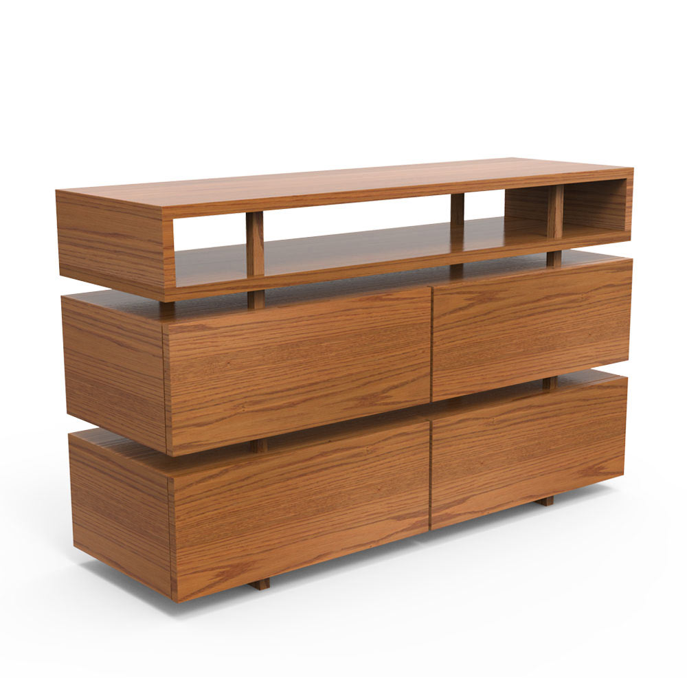 1. The console will help put an end to clutter by giving you four drawers for storing your belongings out of sight.